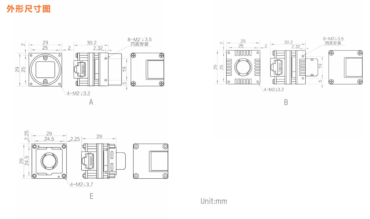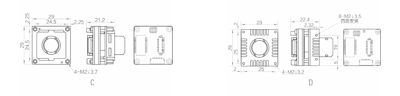 闆級相機支持多(duō)種鏡頭接口選擇,裸闆式、C接口和(hé)M12接口,以滿足不同的客戶需求