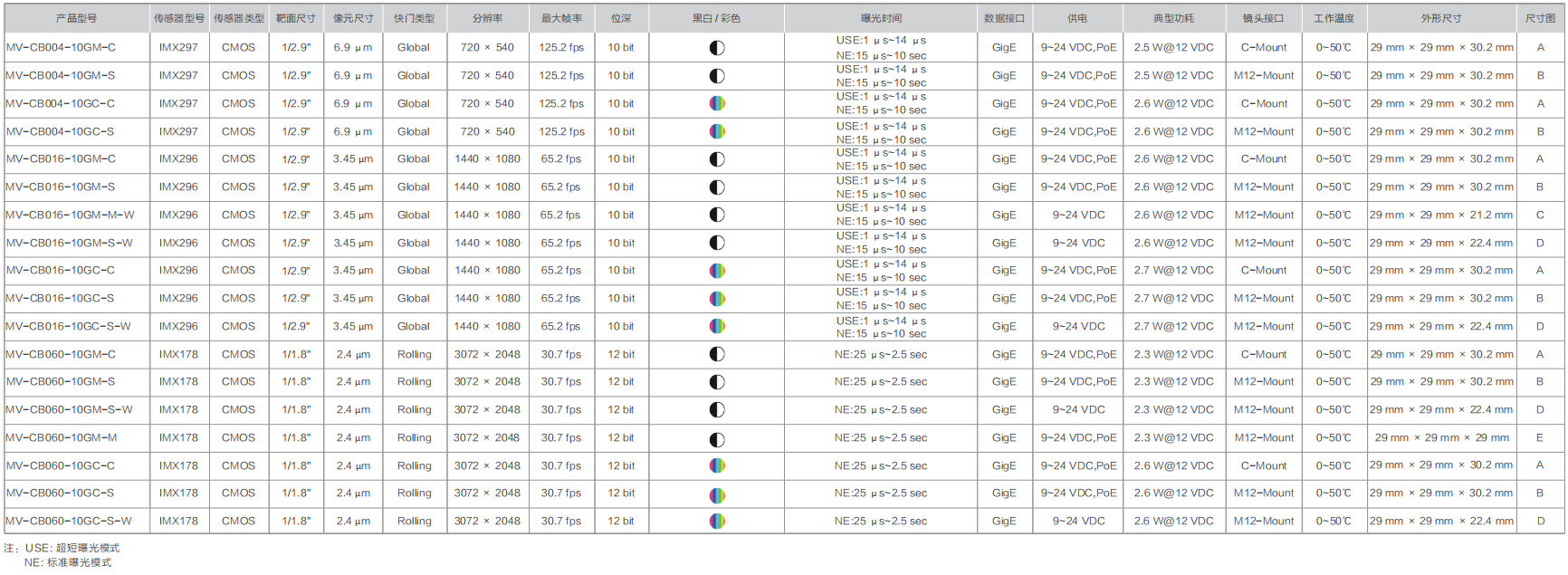 CB系列闆級型産品,采用單闆或多(duō)闆堆疊設計(jì),支持GigE及USB 3.0協議。适用于對空(kōng)間(jiān)要求更高(gāo)的工業、嵌入式、3D、醫(yī)療等場(chǎng)景。
