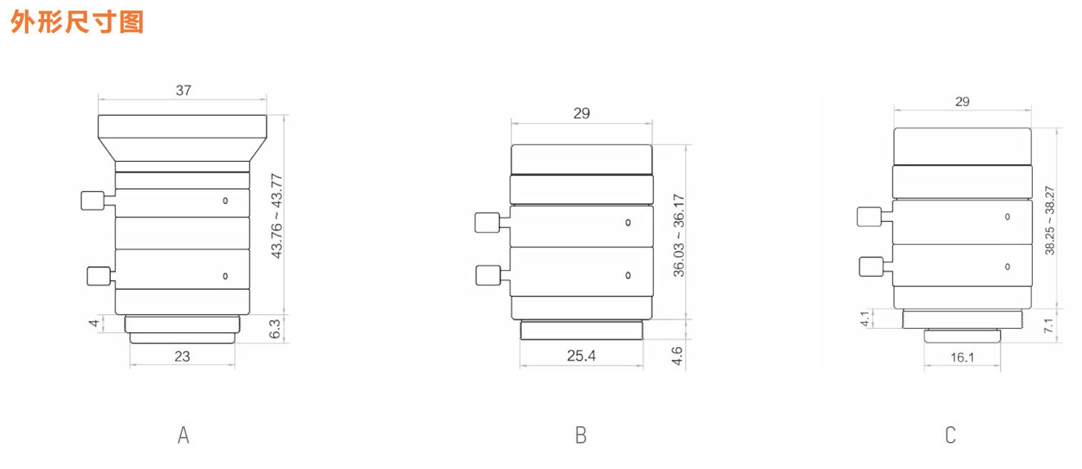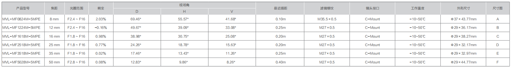 FA鏡頭靶面覆蓋範圍廣,不僅支持1/1.8",2/3",1.1"等小(xiǎo)靶面相機,還(hái)涵蓋30~66mm等多(duō)種大(dà)靶面規格