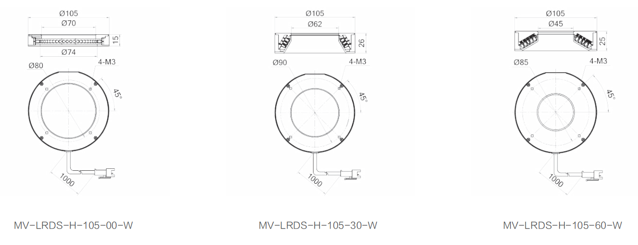 MV-LRDS-H标準環形光源,提供多(duō)種尺寸、照射角度規格型号,內(nèi)置高(gāo)品質LED,在确保光照集中度的同時(shí),提升內(nèi)部散熱設計(jì),确保光源工作(zuò)穩定高(gāo)效。